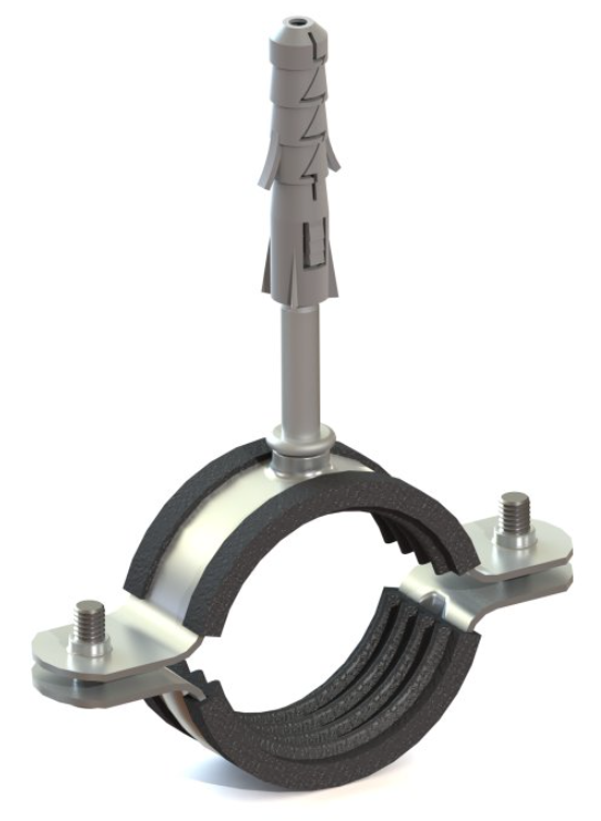 Uchwyt / obejma pojedyncza do rur z tłumieniem drgań 1 1/2 cala, 48-52mm, ocynk galwaniczny