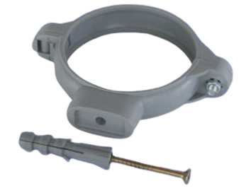 Obejma plastikowa 32mm, stosowana do mocowania rur z tworzyw sztucznych w instalacjach kanalizacyjnych i wentylacyjnych.