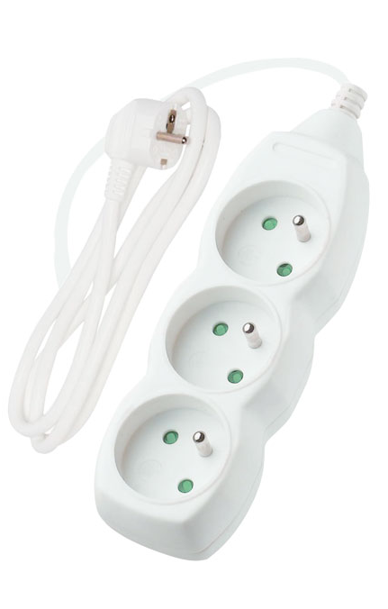 Onnline Przedłużacz 3 gniazda, z uziemieniem, długość przewodu 3 m, 10A, kolor biały