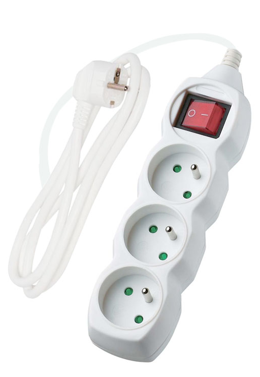 Onnline Przedłużacz 3 gniazda, z wyłącznikiem, z uziemieniem, długość przewodu 5 m, 10A, kolor biały