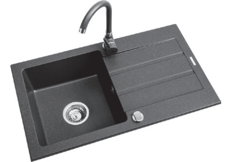 Onnline Zlew granitowy z ociekaczem 76x44cm, jednokomorowy 34x36cm + bateria Bello, czarna Kod: 070 004 901B