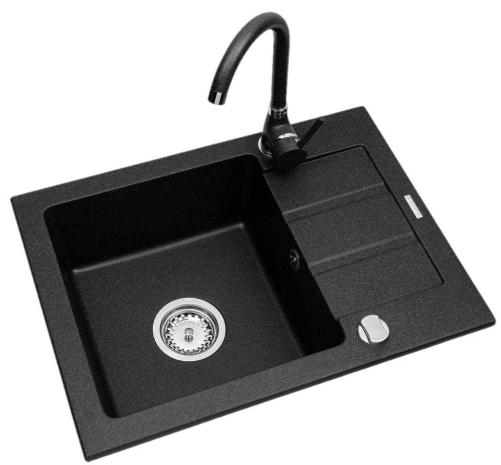 Onnline Zlew granitowy z ociekaczem + bateria czarna 59x44 Kod: 070 054 901B