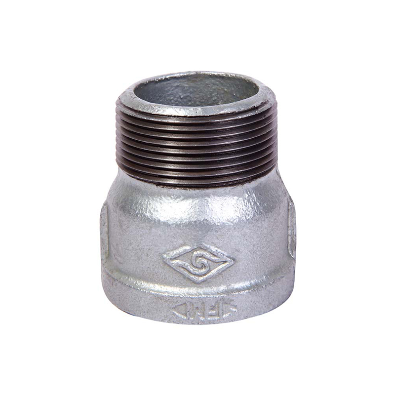 Mufa żeliwna 1/2", z gwintem wewnętrzym i gwintem zewnętrznym, ocynkowana, PN-EN 10242, ciśnienie robocze 25 bar.