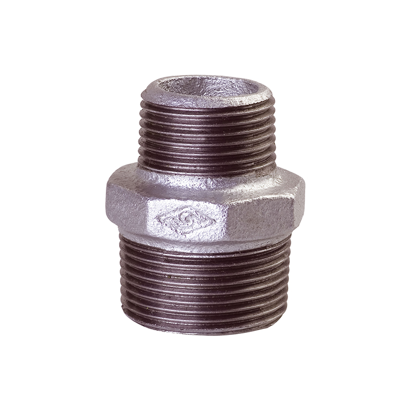 Opal Nypel redukcyjny żeliwny z gwintem z zewnętrznym 2" x 5/4", ocynkowana, PN-EN 10242, ciśnienie robocze 25 bar.
