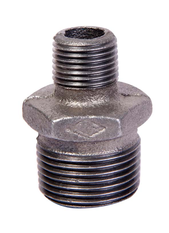 Opal Nypel żeliwny redukcyjny 3/4" x 1/2", czarna, PN-EN 10242, ciśnienie robocze 25 bar.