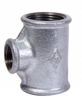 Trójnik żeliwny redukcyjny z gwintem 2" x 6/4" x 2", ocynkowany, PN-EN 10242, ciśnienie robocze 25 bar.