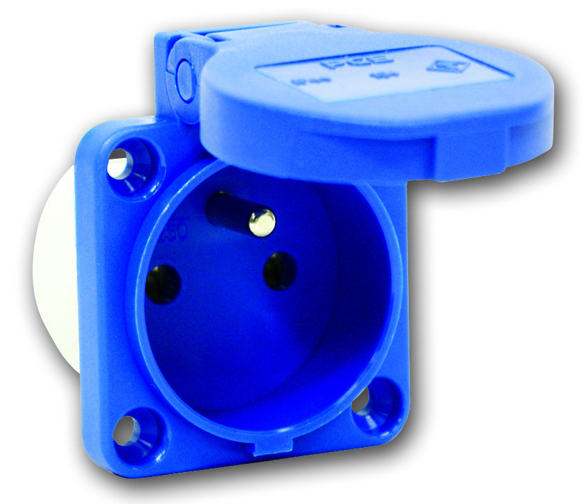 Gniazdo tablicowe 1F P-Nova, 16A, 230V, 2P+Z z bolcem, IP54, boczne wyprowadzanie przewodu, 50x62 mm, niebieskie