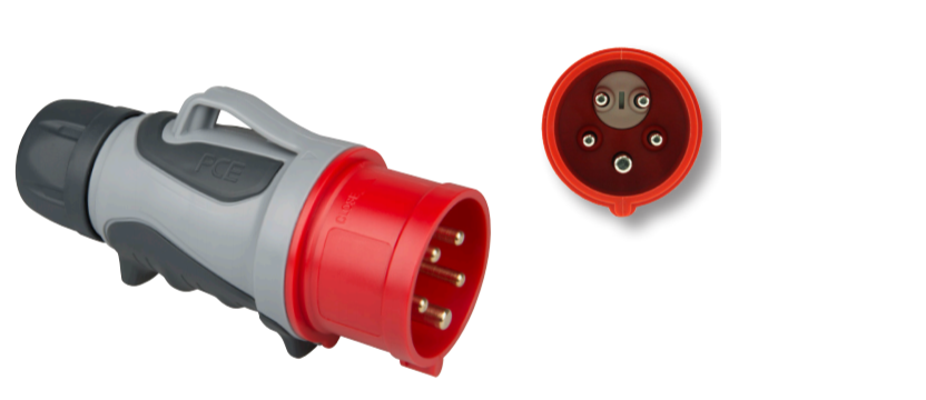 PCE GRIP Wtyczka przenośna ze zwrotnicą faz 32A, 3P+Z+N, 400V, IP44/54, zaciski śrubowe KOD: 70253-6TT