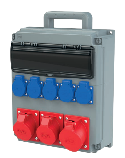 PCE OPOLE Rozdzielnica stacjonarna, 1xCEE 32A/5P 400V, 2xCEE 16A/5P 400V, 5xGS 16A 230V, przenośna z rączką KOD: 909210001W