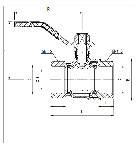 Zawór kulowy wodny GW/GW, G1, DN 25, Tmax: +120ºC, P max: 1,6 MPa, Q[m3 /h]: 2,52, Kv*[m3 /h]: 7,97