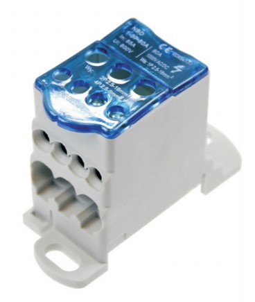 Blok rozdzielczy NBD, przeznaczone do montażu na szynach uniwersalnych TS35 bądź na płaskim podłożu, 160A, 6x2,5-16mm2 1x6-16mm 2 1x10-70mm