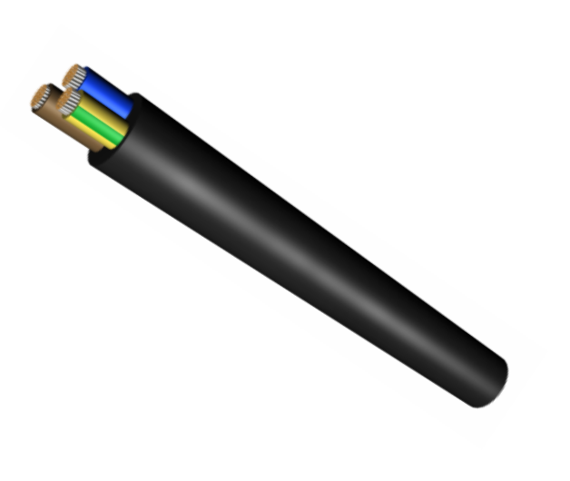 Przewód w izolacji i powłoce gumowej, do odbiorników ruchomych i przenośnych, 4 żyłowy, przekrój znamionowy 2,5 mm2, 500V odcinek 1m