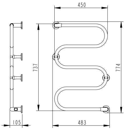 ATHENA S Suszarka elektryczna o mocy 50W, 737x450mm, kolor chrom. Grzejnik może być montowany w dowolnej orientacjii góra-dół. W komplecie z 1,5 m przewodem zasilającym z wtyczką do szybkiego podłączenia oraz śrubami i zawieszeniami montażowymi. IP44.