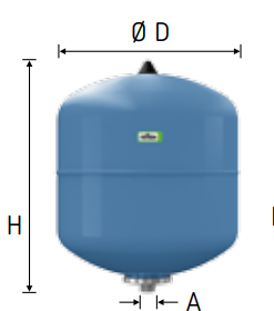 Refix DE 33 Nieprzepływowe ciśnieniowe naczynie przeponowe do instalacji przeciwpożarowych, wody użytkowej i ogrzewania podłogowego, lakierowana powłoka zewnętrzna w kolorze niebieskim, montaż naścienny, ciśnienie wstępne 4 bar, dopuszczalna temperatura pracy 70°C