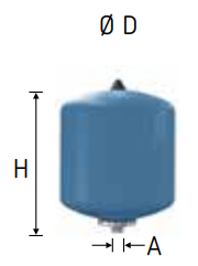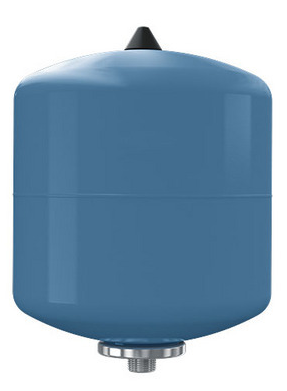Refix DE 8 Nieprzepływowe ciśnieniowe naczynie przeponowe do instalacji przeciwpożarowych, wody użytkowej i ogrzewania podłogowego, lakierowana powłoka zewnętrzna w kolorze niebieskim, montaż naścienny, ciśnienie wstępne 4 bar, dopuszczalna temperatura pracy 70°C