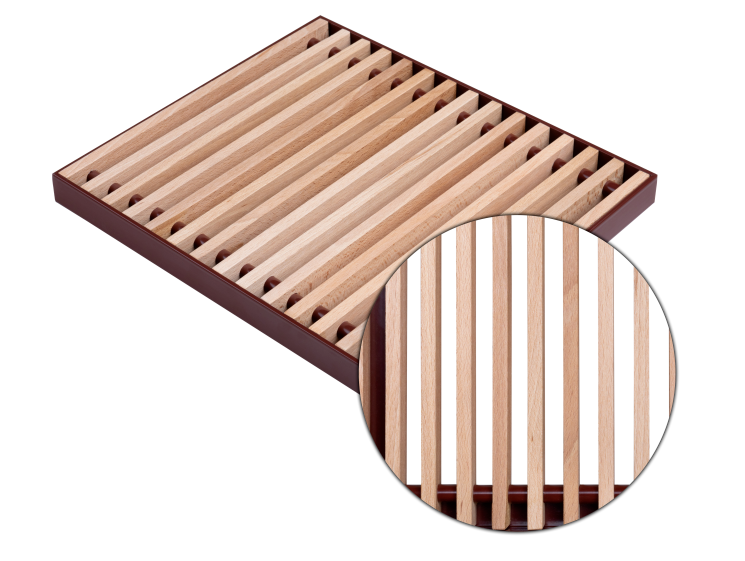 Regulus podest drewniany impregnowany- typu listwa, do grzejników dla TRIOVENT, QUATTROVENT, szerokość podestu 300 mm , odległość pomiędzy szczeblami 11 mm, długość 2500 mm, kolor: buk-listwa, tuleje dystansowe umieszczone między szczeblami wykonane są z aluminium, standardowo pomalowanego na kolor RAL 8015 (brąz kasztanowy) , poprzeczny zwijany (standard)