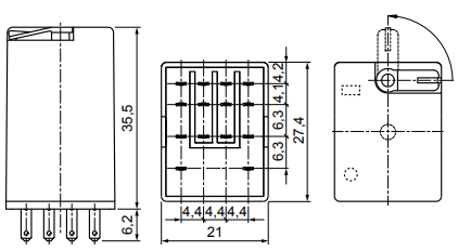 Przekaźnik przemysłowy, elektromagnetyczny, R4N-2014-23-5230-WT, cewka 230VAC, 4 styki przełączne, obciążenie max 6A/230VAC, małogabarytowy, do gniazda wtykowego