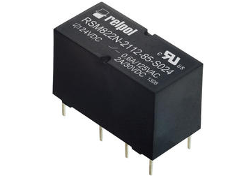 Przekaźniki RSM822N, monostabilne, 2 zestyki przełączne, 2 A, do obwodów drukowanych. Wejście / cewka: 1-16, napięcie zasilania Un - 24 V DC