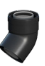 PAL Kolano koncentryczne 45stopni fi 60/100, kolor czarny, materiał PP, z uszczelką EPDM, do kotłów kondensacyjnych