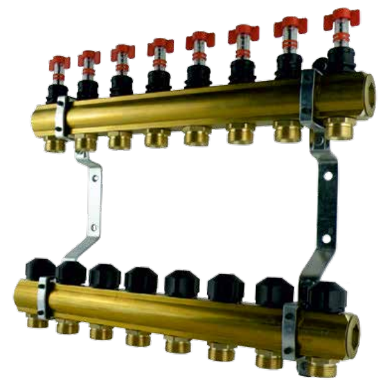 Rozdzielacz podłogowy, 10-otworowy PTM STANDARD z przepływomierzami, zaworami termostatycznymi
