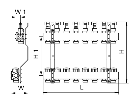 Rozdzielacz podłogowy, 5-otworowy PTM STANDARD z przepływomierzami, zaworami termostatycznymi
