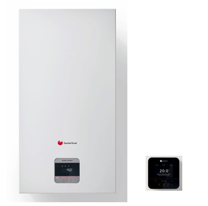 Pakiet Saunier Duval Wiszący Kocioł gazowy IsoTwin condens T31-CS/1 (N-PL) o zakresie mocy 3,5-25,0 kW oraz MiPro Sense SRC 720 regulator pogodowy, przewodowy, tygodniowy, dotykowy panel sterowania