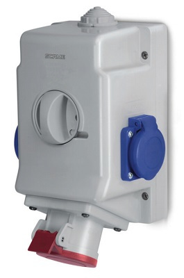 Gniazdo stałe natynkowe, 5-biegunowe, 32A, IP54, z przełącznikiem L-0-P + dwa gniazda domowe