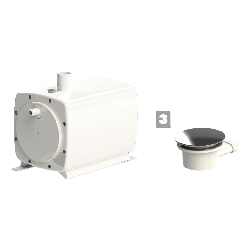 SFA Pompa ssąco-tłocząca Sanifloor 3 - Średnica syfonu wynosi 90 mm, średnica wylotu 16 mm, wysokość całkowita 68 mm,