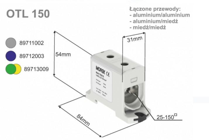 SIMET OTL150 Złączka szynowa gwintowa AL/CU / 25-150 mm2 MAA1150B10 niebieski Kod 89712003