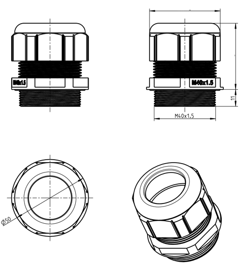 zakres uszczelnienia 16 - 28 mm, długość gwintu 11 mm