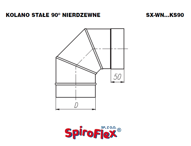Spiroflex kolano stałe 90° fi 250 stal nierdzewna, kolano kominowe SX-WN250KS90