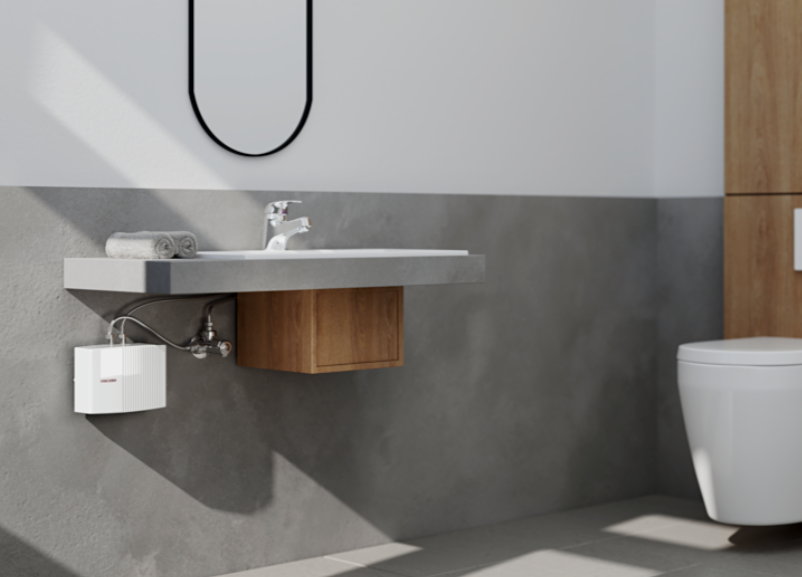 Mini przepływowy ogrzewacz wody o mocy 4,4 kW z regulacją elektroniczną, udostępniający natychmiast ciepłą wodę użytkową w niewielkich ilościach. Możliwość montażu poniżej lub powyżej punktu poboru. Możliwość eksploatacji z armaturą ciśnieniową lub bezciśnieniową