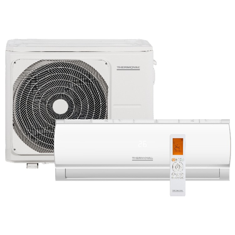 Thermoval Sakai TVK-S20 Komplet klimatyzacji typu split z opcją grzania, naścienny, moc chłodnicza 2,6 kW, moc grzewcza 2,9 kW, 230V, R32, Wi-fi, Silnik DC,