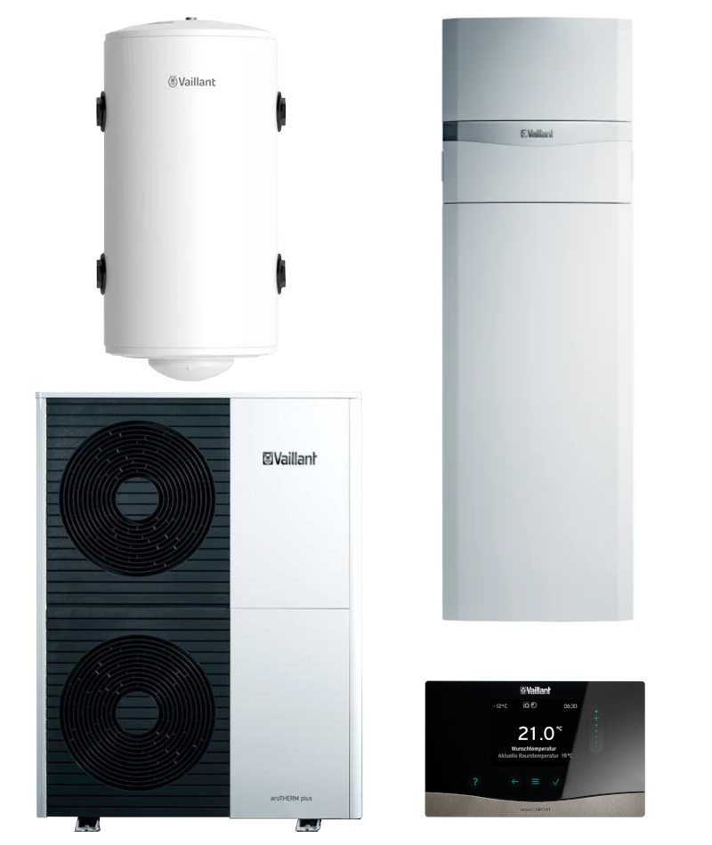 Vaillant Zestaw aroTHERM VWL 125/6 A + VIH QW 190/6E uniTOWER plus + VP RW 100/3 B + sensoCOMFORT VRC 720 Kod 0010044196