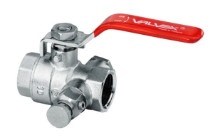 Valvex ONYX Zawór kulowy niklowany 6/4cala z korkiem, zaworkiem spustowym i dławikiem z dźwignią stalową Kod 1456650