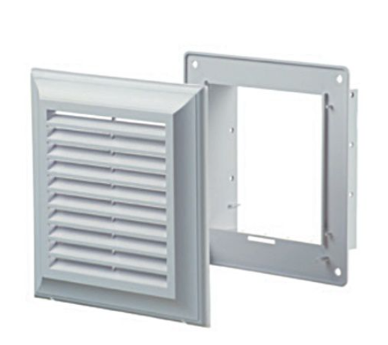 Kratka wentylacyjna nadtynkowa kwadratowa z siatką z otworem wyjściowym kwadratowym o średnicy 100x100mm, nawiewno-wywiewna do pomieszczeń wewnątrz budynku o wymiarach 140×140 mm, biały