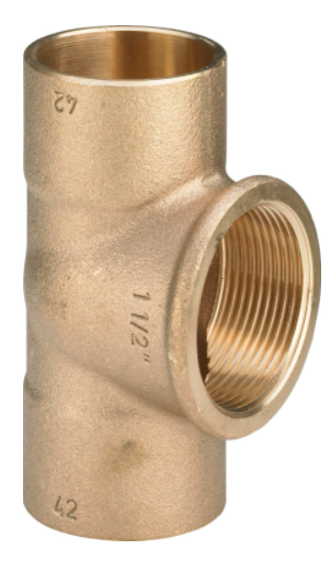 94130G Trójnik z gwintem wewnętrznym lutowany z brązu do rur miedzianych, 22x3/4"x22, przyłącza lutowane, gwint Rp