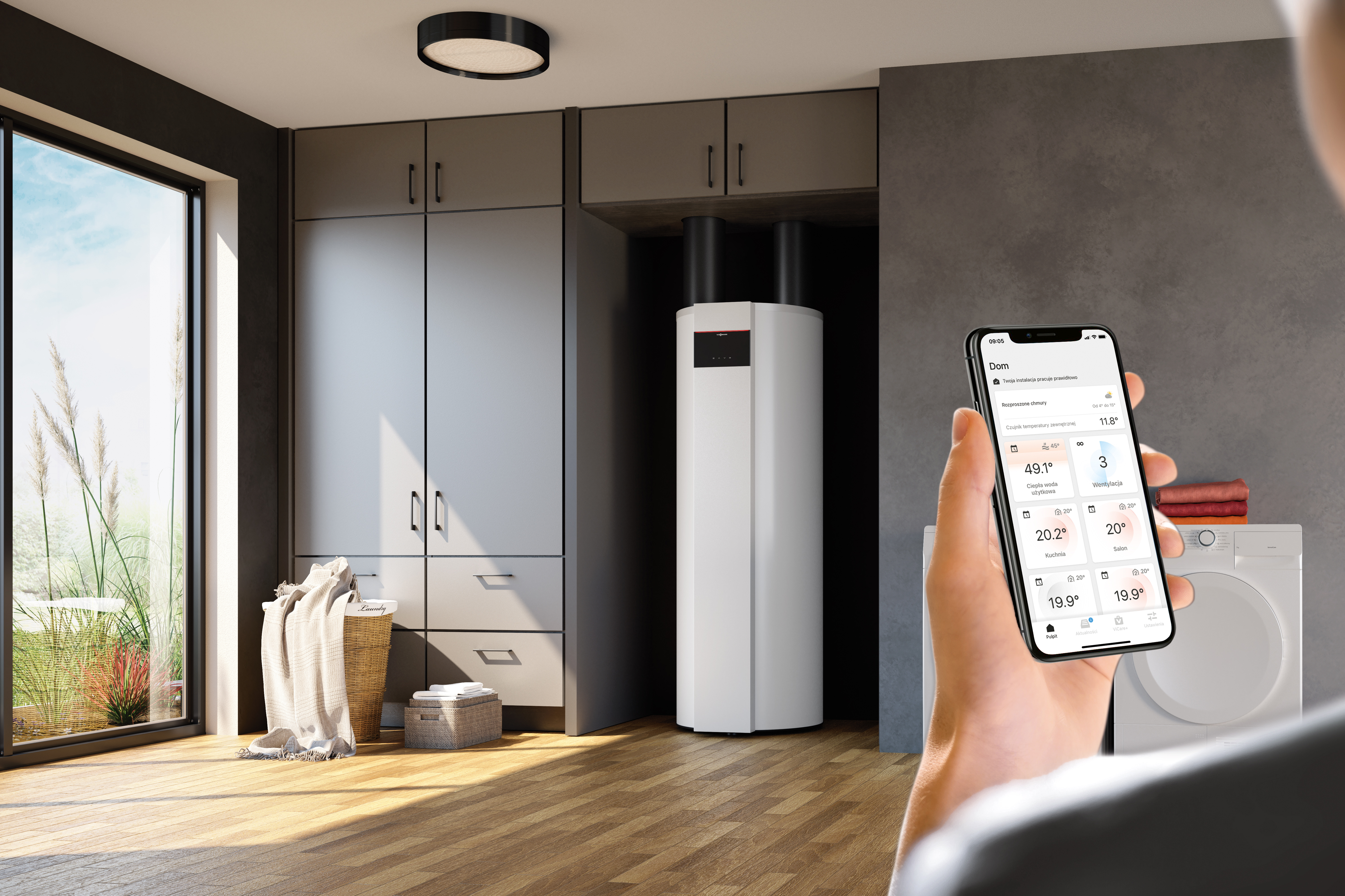 Pompa ciepła powietrze/woda do podgrzewu c.w.u. z naturalnym czynnikiem chłodniczym R290, do pracy z powietrzem zewnętrznym, ze zintegrowanym podgrzewaczem c.w.u. o pojemności 178 litrów i grzałką elektryczną o mocy grzewczej 1,5 kW. Współczynnik COP: 3,44 (L).