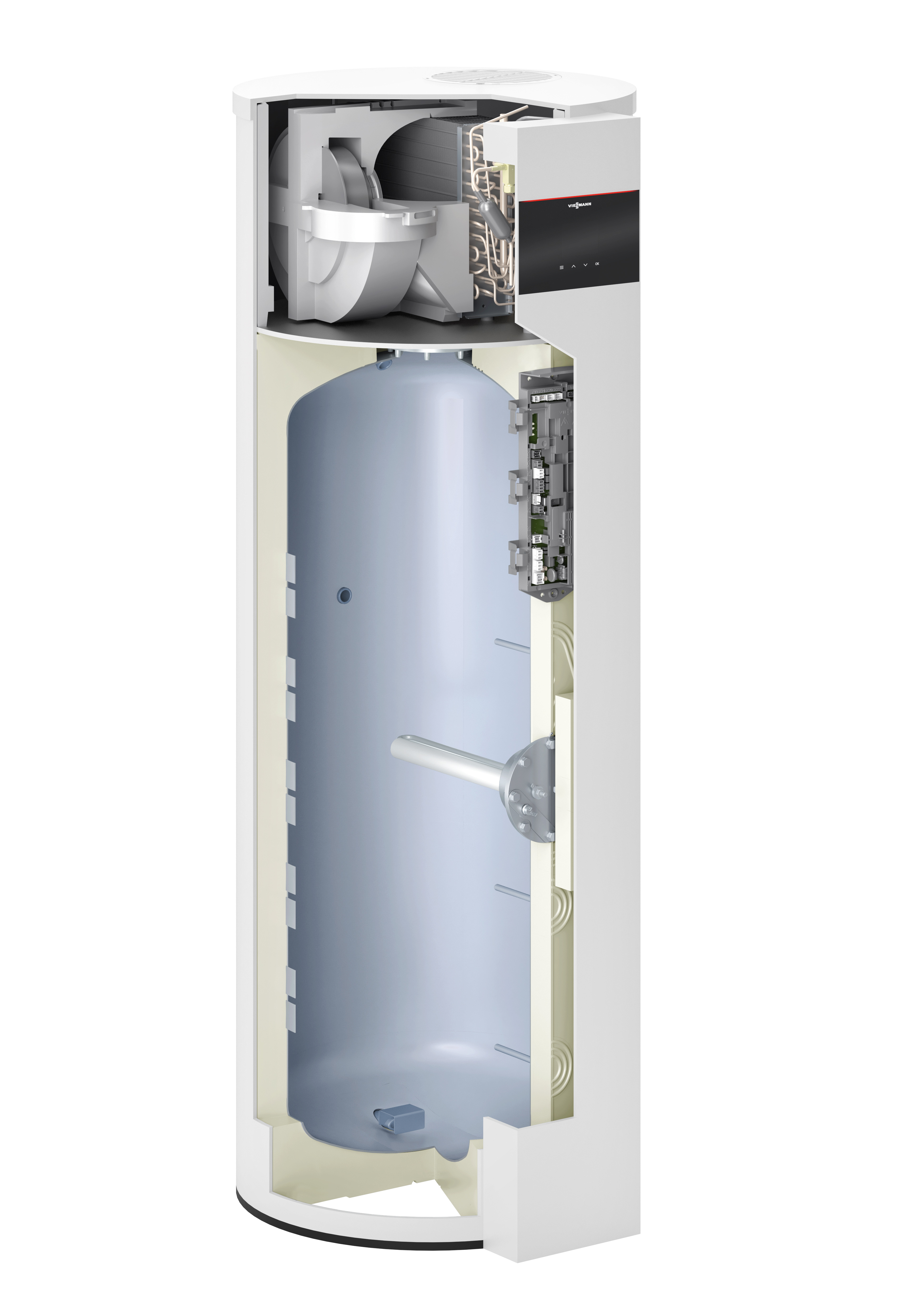 Viessmann Vitocal 060-A T0E-R290 Pompa ciepła do c.w.u. ze zbiornikiem o poj. 254 litrów i grzałką, praca na powietrzu zewnętrznym Kod Z028429