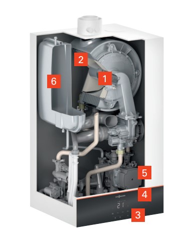 Viessmann VITODENS 100-W 32 kW Pakiet Kocioł jednofunkcyjny (typ B1HF) + zasobnik c.w.u. EWS 160 o pojemności 144l z grzałką ceramiczną 2,2kW. Pakiet posiada regulator E3, wyświetlacz LED dotykowy. Zintegrowany moduł WI-FI. Palnik Matrix z systemem Lambda Pro. Naczynie przeponowe o pojemności 8 litrów. Wężownica o powierzchni 1,45m2.