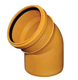 Kolanoa kanalizacji grawitacyjnej z PVC-U z uszczelką wargową, 110x45, klasa S, SN 8, kolor pomarańczowy