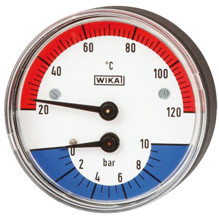 Wika 100.12.63 Termomanometr z przyłączem tylnym, fi 63 mm, 0 - 120 st C, 0 - 6 bar, kod: 7347043