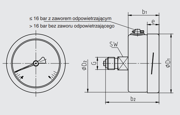 Manometr z rurką Bourdona, wersja ze stali CrNi, 0-10 BAR