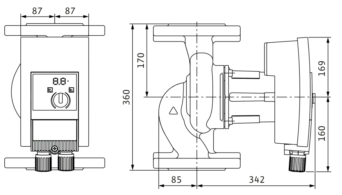 Yonos MAXO 100/0,5-12, DN100 Bezdławnicowa pompa obiegowa z przyłączem kołnierzowym, silnik synchroniczny zgodnie z technologią ECM, wyświetlacz LED, przyłącza obustronnie DN100, maks. ciśnienie robocze PN6, długość montażowa 360mm