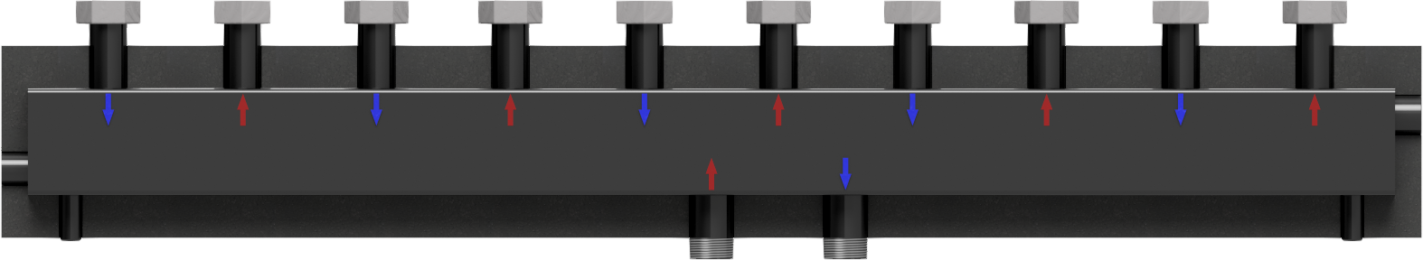 Rozdzielacz centralnego ogrzewania C 100 5 F - DN 25, dwukomorowy, stalowy, pięcioobiegowy, system do 110 kW.