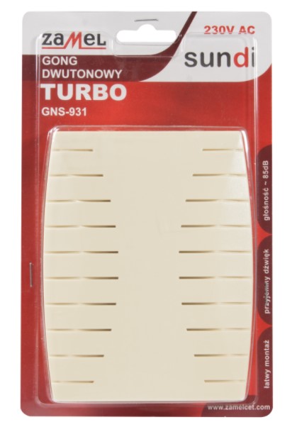 Zamel SUNDI GNS-931-BEŻ Gong dwutonowy TURBO, 230 V, beżowy Kod SUN10000123
