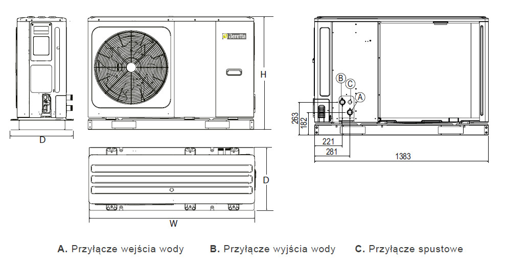 Beretta HYDRO UNIT M 010 Pompa ciepła typu monoblok powietrze/woda o mocy 10 kW Kod 20203416