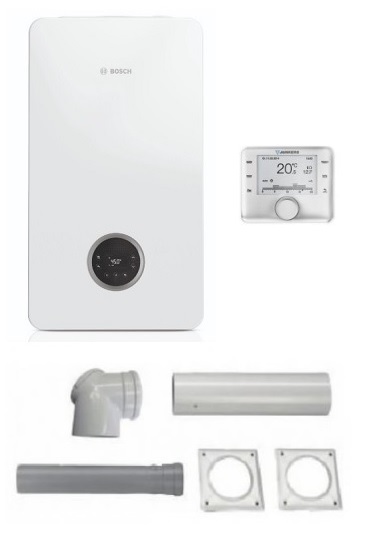 Bosch CONDENS GC2300iW 24C Kocioł gazowy, wiszący, zamknięta komora spalania, dwufunkcyjny + Regulator Pogodowy z czujnikiem zewnętrznym + System Powietrzno-Spalinowy AZB 616/1