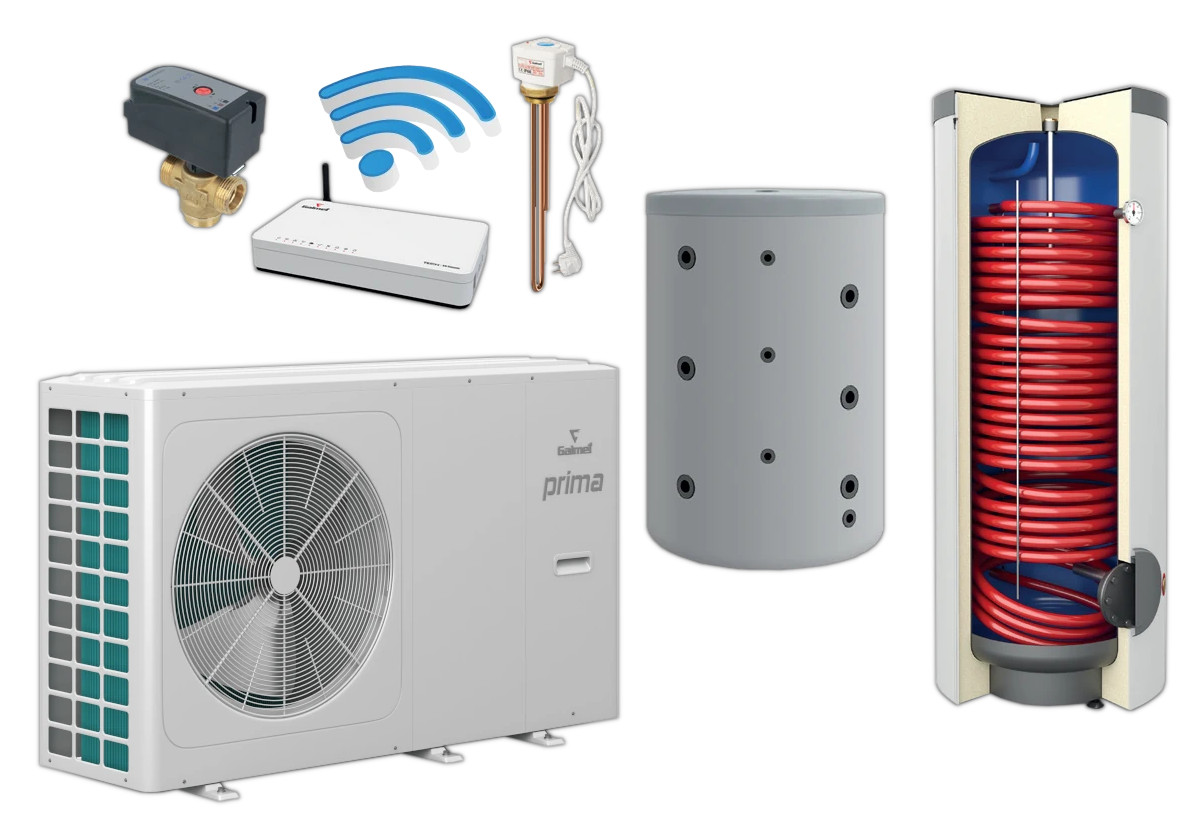Galmet Zestaw pompa ciepła Prima 3F 12GT monoblok + wymiennik SGW(S) 300 + bufor SG(B) 200 + centrala Sinum + dodatki Kod SG-000078S