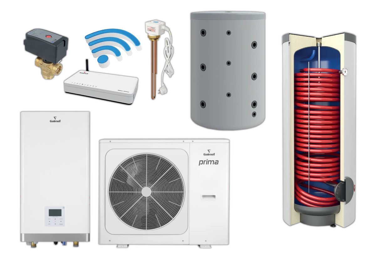 Galmet Zestaw pompa ciepła Prima S3F 12 GT split + wymiennik SGW(S) 300 + bufor SG(B) 200 + centrala Sinum + dodatki Kod SG-000083S